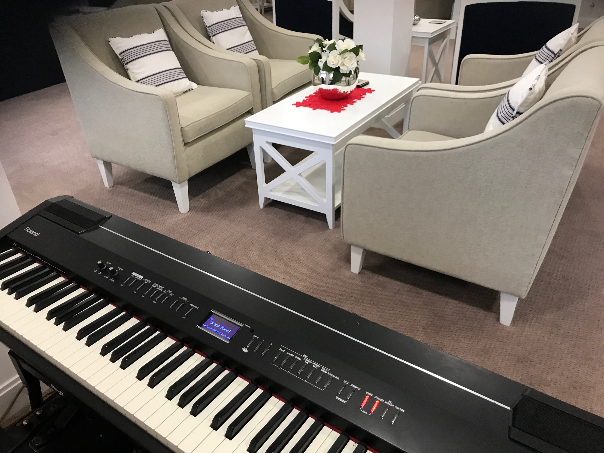 If no piano is installed already I can bring my latest model digital piano to play for you, which will fit into a very small space yet will always be in the finest state of tuning and sound every bit as wonderful as a classic top piano which has been perfectly maintained.